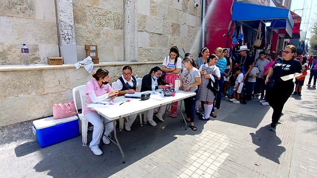 Reynosa, Tamaulipas.-Con el objetivo de ampliar la cobertura inmunológica, autoridades de salud instalaron módulos itinerantes de atención en diversos sectores de la ciudad, registrando una respuesta masiva por parte de la ciudadanía.