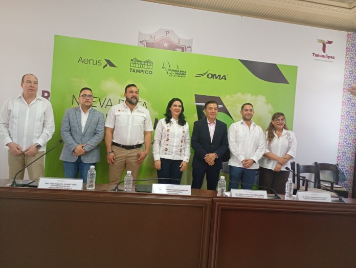 En rueda de prensa, junto con la alcaldesa de Tampico, Mónica Villarreal Anaya, así como Miguel Legorreta Hernández, director Comercial de Aerus y Eder Alberto Jiménez León, administrador del Aeropuerto de Tampico dieron a conocer los pormenores de la oferta aérea.