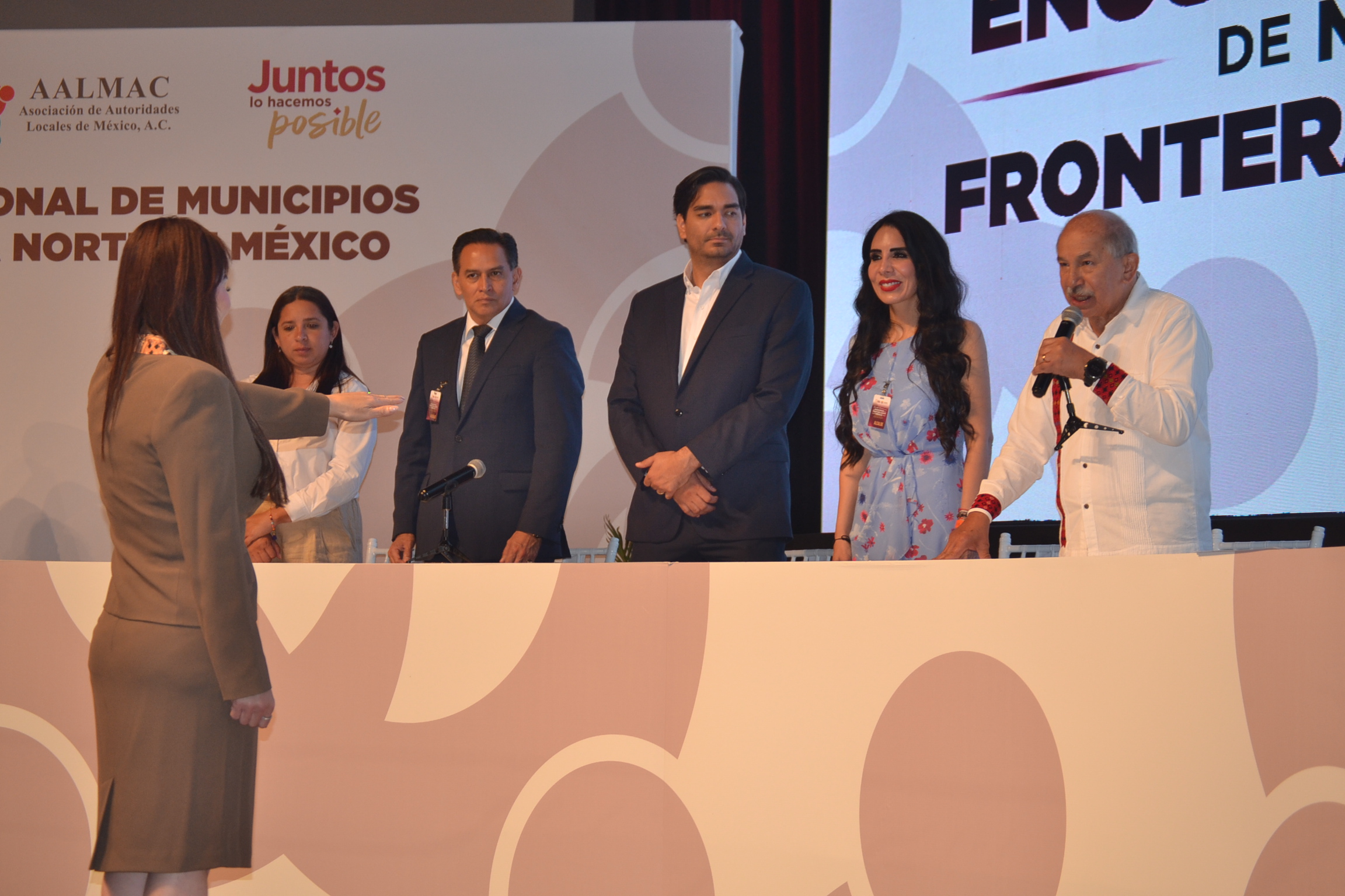Nuevo Laredo, Tamaulipas.-Al llevarse a cabo aquí el Encuentro Nacional de Municipios de la Frontera Norte, la alcaldesa de Nuevo Laredo asumió el cargo de coordinadora nacional de los alcaldes fronterizos, y tomó protesta ante integrantes de la Asociación de Autoridades Locales de México  (Aalmac).