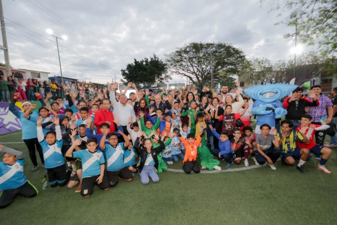 Añadió que con el objetivo de ampliar los espacios, que contribuyan a la integración familiar en entornos seguros, se llevaron a cabo los trabajos de rehabilitación del campo de pasto sintético ‘Joaquín del Olmo’.