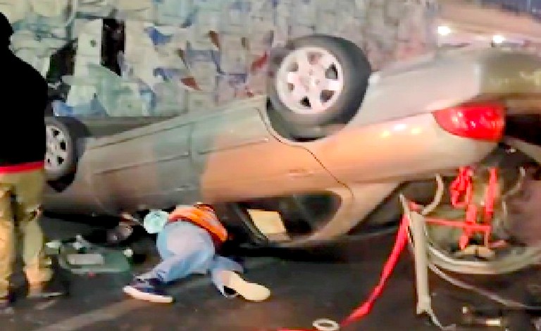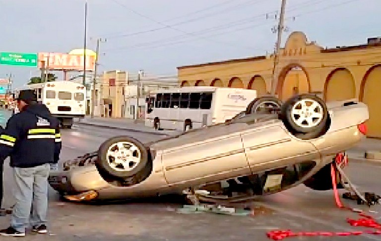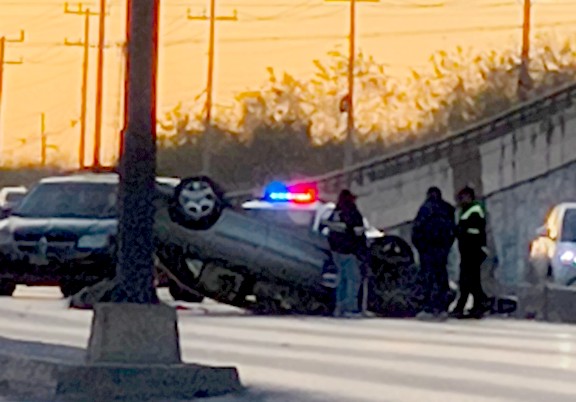 Los hechos se registraron sobre la carretera Río Bravo-Reynosa, a un costado de la colonia Fraccionamiento Reynosa, donde una unidad terminara volcada, luego de que al parecer se impactara contra el “muro de la muerte” que sirve de cordón vial.
