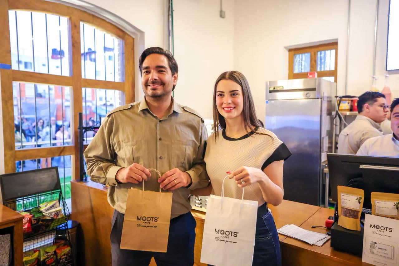 El Presidente Municipal Carlos Peña Ortiz acompañado de su esposa Alejandra Yelitza Garza inauguró el Café Moots Ferrocarril, junto a los creadores de la marca, Oscar Emir Rodríguez y Giovanni Gastelum, primeros en el programa municipal “Apertura de Negocios Costo Cero”, un paso extraordinario para el desarrollo económico y turístico de la ciudad.