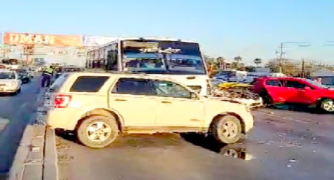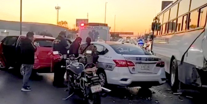 Reynosa, Tamaulipas. -Aparatoso accidente vial se registró en una concurrida carretera, donde el saldo final fuera de personas lesionadas, cuantiosos daños materiales, obstrucción vehicular, y caos.
