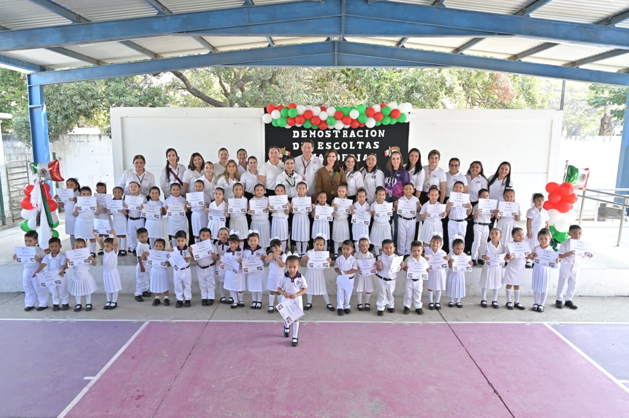 Durante el evento, las niñas y niños de nivel preescolar dieron muestra de responsabilidad, patriotismo y compromiso, demostrando que la identidad se construye desde los primeros años de formación.