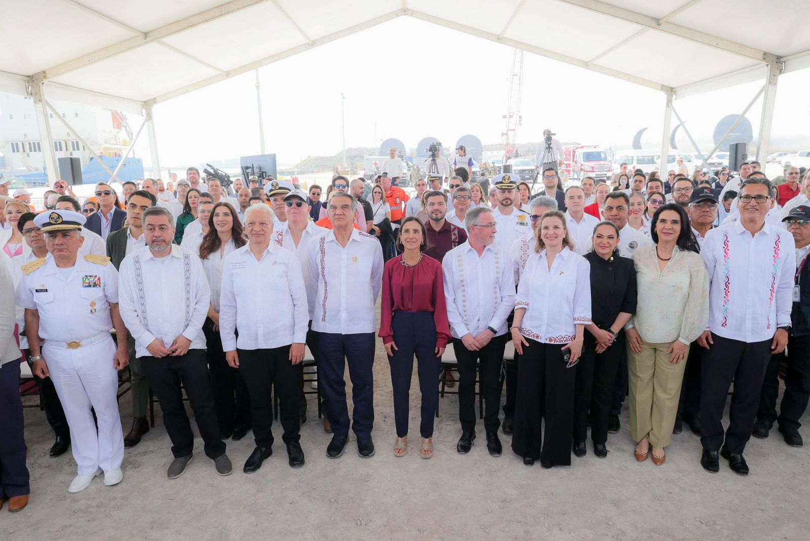 En este acto también estuvieron presentes los alcaldes de Ciudad Madero, Erasmo González Robledo, y de Altamira, Armando Martínez Manríquez; Stéphane Henri Roger Drouand, vicepresidente y director del Proyecto Trión en México de Woodside Energy; Fidel Maldonado Herrera, titular de ASIPONA Altamira; Walter Julián Ángel Jiménez, secretario de Desarrollo Energético de Tamaulipas; y Ninfa Cantú Deándar, secretaria de Economía del estado, además de personal directivo de Petróleos Mexicanos (Pemex).
