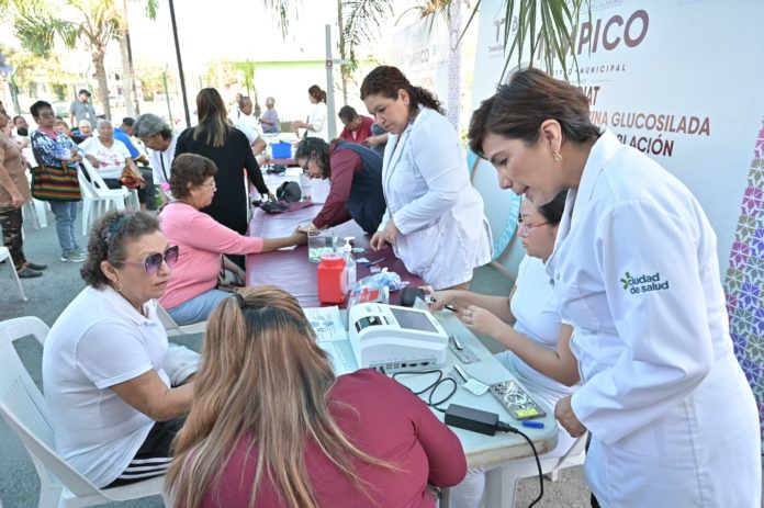 La titular de la Dirección de Servicios Médicos de Tampico, Ofelia Cantú Rodríguez, informó que esta jornada forma parte de la iniciativa integral de atención a la población impulsada por la alcaldesa Mónica Villarreal Anaya en la que participó personal médico del Distrito de Salud y Bienestar No. 2, IMSS Bienestar y el gobierno local quienes proporcionaron pruebas de hemoglobina glucosilada, tanto a la ciudadanía en general como a las personas que viven con diabetes.