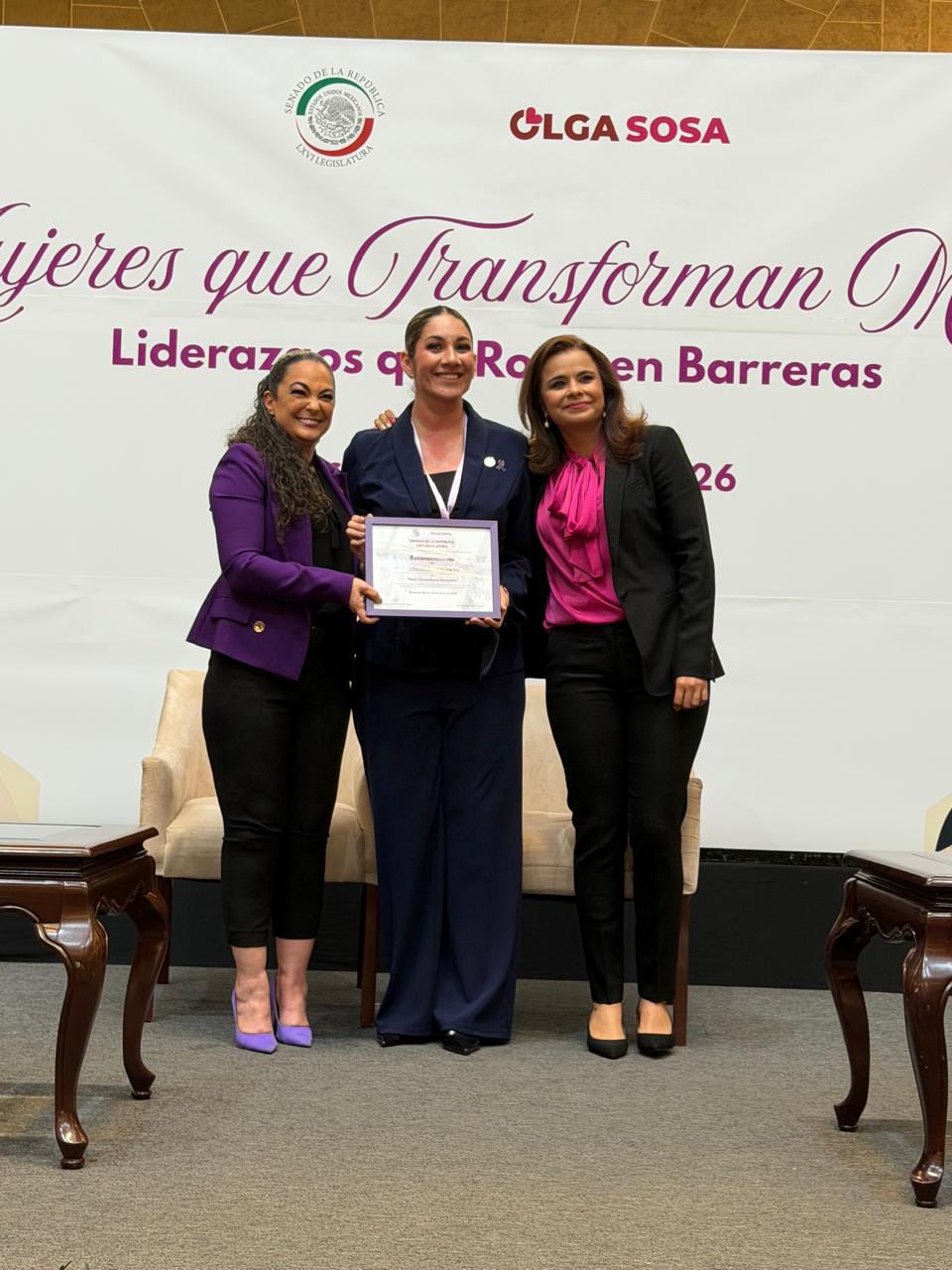 Tampico, Tamaulipas.-En una ceremonia realizada en el Antiguo Senado de la República, la senadora Olga Patricia Sosa Ruiz reconoció a la empresaria tampiqueña Lorena Kareli Rivera Ortiz como “Mujer Tamaulipeca Destacada”, durante el evento “Mujeres que Transforman México: Liderazgos que Rompen Barreras”.