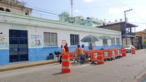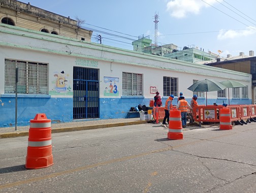Tampico, Tamaulipas. -Tras externar madres de familia su preocupación por labores que hacían trabajadores de la empresa de gas natural ENGIE, en el exterior del jardín de niños “Escudo Nacional”, ubicado en la calle Héroe de Nacozari, la directora de ese plantel descarto riesgo para los 78 alumnos que estudian en este lugar.