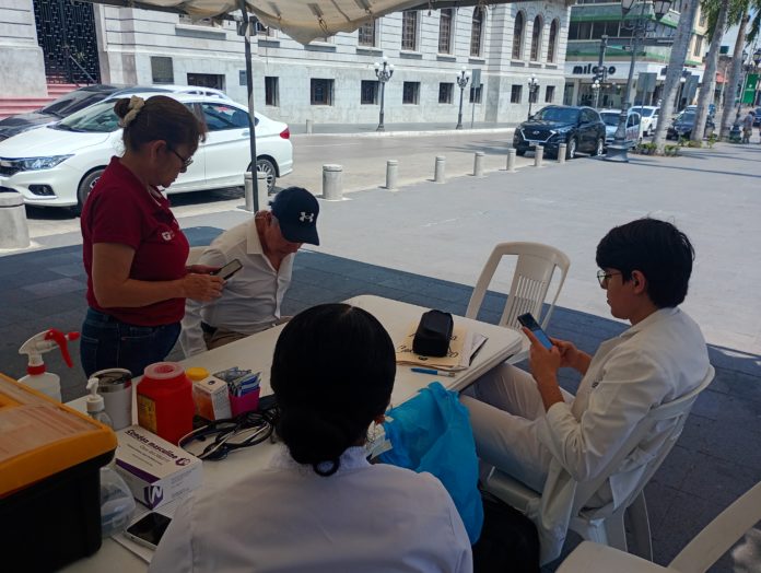Tampico, Tamaulipas.-A más de 80 personas han brindado atención médica en el módulo instalado en la Plaza de Armas de Tampico, en su mayoría por descompensarse al no tomar su medicamento para la hipertensión y la diabetes.