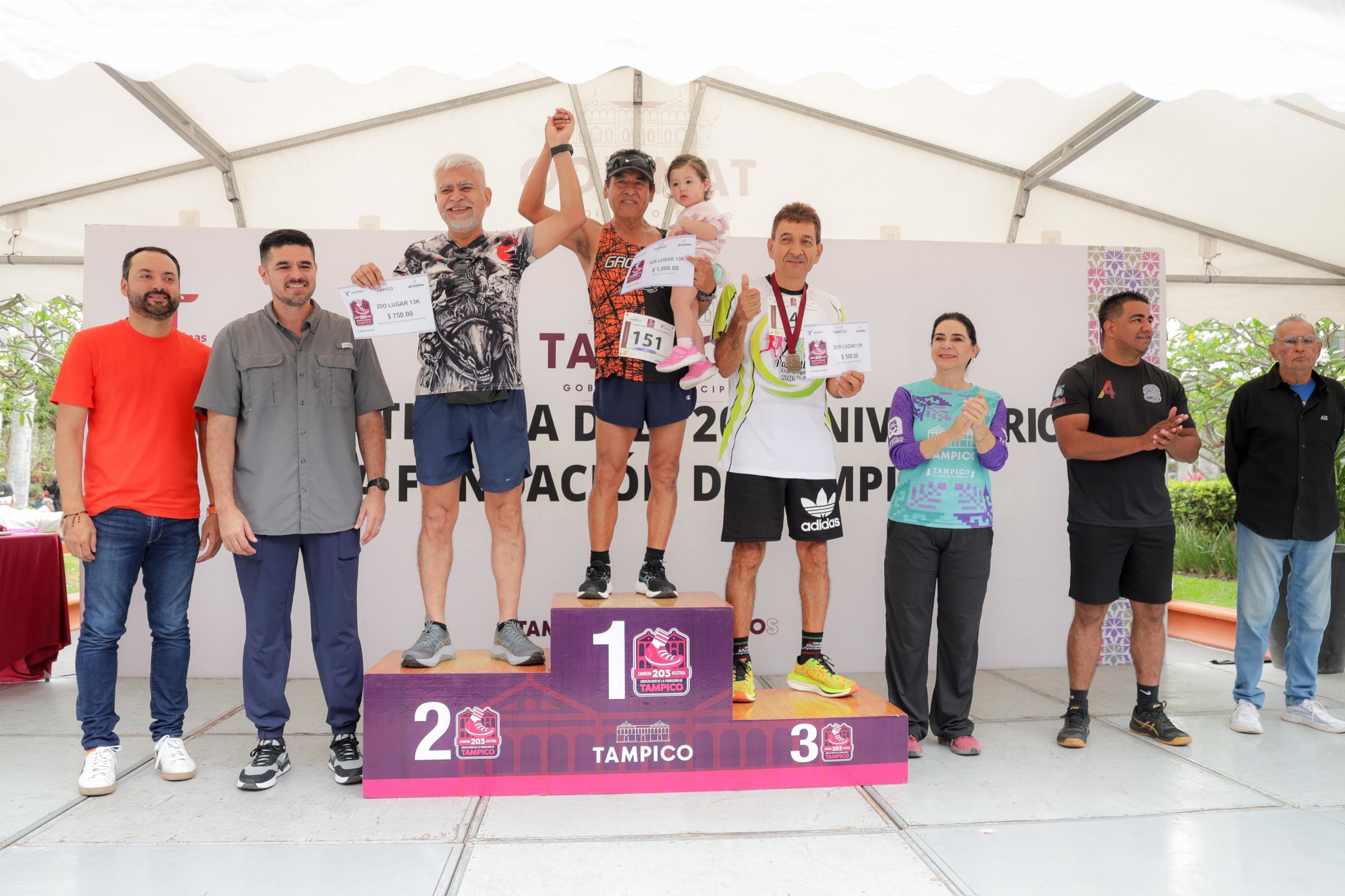 De manera simultánea, en Altamira se realizó el arranque a las 06:30 horas, partiendo el recorrido de 24 kilómetros desde la plaza principal, mientras que la ruta de 13 kilómetros inició en la divisoria, teniendo como meta el pórtico del Palacio Municipal de Tampico.