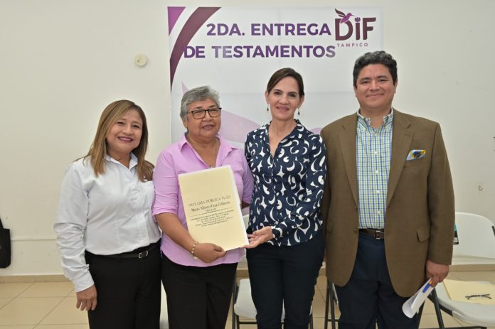 La presidenta del Sistema DIF Tampico, Dra. Luz Adriana Villarreal Anaya, encabezó la segunda entrega de testamentos a los adultos mayores adscritos a la Casa Club de la colonia Solidaridad,Voluntad y Trabajo, donde refrendó su compromiso por continuar con está iniciativa que ofrece tranquilidad y certidumbre jurídica.