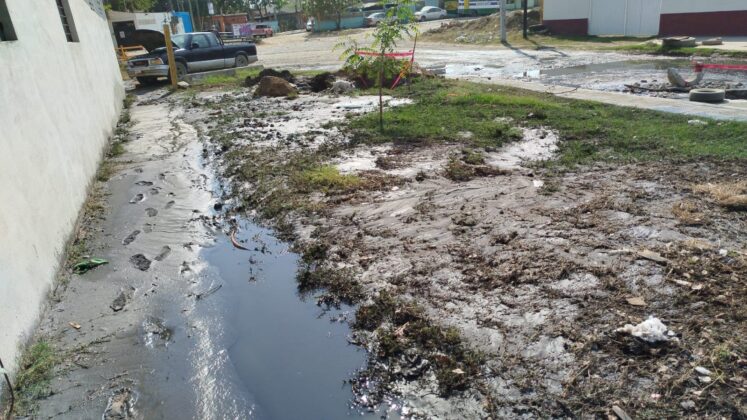 Indicaron que esto sucede en la esquina de Calle Hidalgo y Cuauhtémoc, frente al fraccionamiento Santa Elena, afuera de un taller mecánico se encuentra un derrame de aguas negras, generando malos olores, focos de infección y un riesgo latente para quienes viven y transitan por la zona.