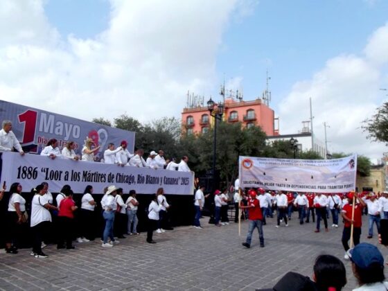 Durante el recorrido, los participantes suelen portar pancartas con demandas relacionadas con mejoras salariales, seguridad social, condiciones laborales dignas, acceso a la vivienda y fortalecimiento de los derechos laborales en la frontera.