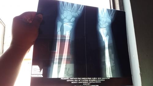 La madre del menor, señaló que llevó a su hijo a un médico particular, esto al no contar con seguridad social, por lo que tuvieron que tomarle una radiografía al niño, detectando la doble fractura en su brazo izquierdo.