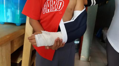 “Ayer en la tarde me marcó el maestro del niño y me dijo que se había caído y que él creía que se había fracturado, fui por el niño y cuando llegué le habían puesto una tablita y le enrollaron papel de rollo con una cinta y me lo traje a la clínica”.