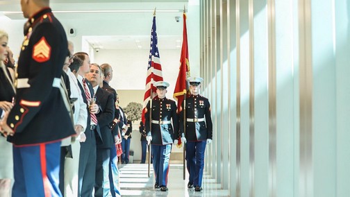 Durante la ceremonia, los asistentes al evento observaron una Guardia de Honor montada por el cuerpo de Marines de Estados Unidos desplegados en las nuevas instalaciones diplomáticas en Nuevo Laredo.