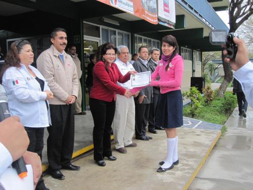 Río Bravo, Tamaulipas.- En el marco del inicio del ciclo escolar febrero-junio 2012, del plantel Río Bravo, del Colegio Nacional de Educación Profesional Técnica (CONALEP), la diputada local por el octavo distrito, con cabecera en Río Bravo, Norma Alicia Treviño Guajardo, hizo entrega de diplomas y reconocimientos a los alumnos que destacaron en aprovechamiento, así como reconocimientos a los ganadores del concurso Expo-creatividad, “Mi Primera Empresa”.