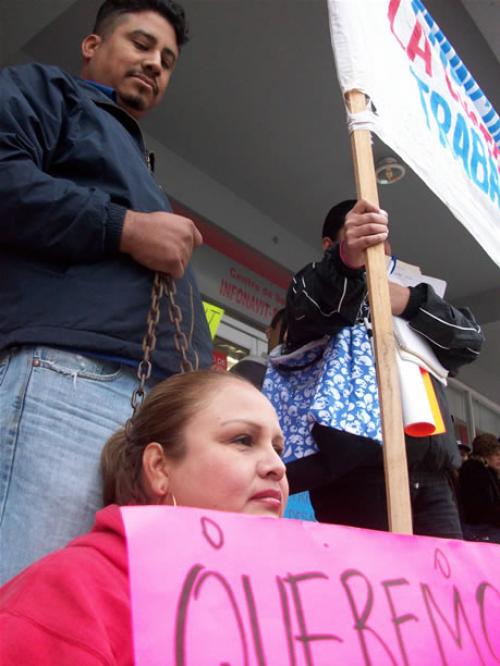 Silvestre Olivares, habitante de Col. Jarachina, agrega: ¨Estamos aquí, y como quiera nos están descontando, nuestra familia pues donde está el dinero, todo para Infonavit, entre diez y once años pagando, yo tengo once años pagando, y esto es lo que me está haciendo, no tienen escrituras, no tienen nada, como quiera los descuentos siempre llegan puntualmente¨.