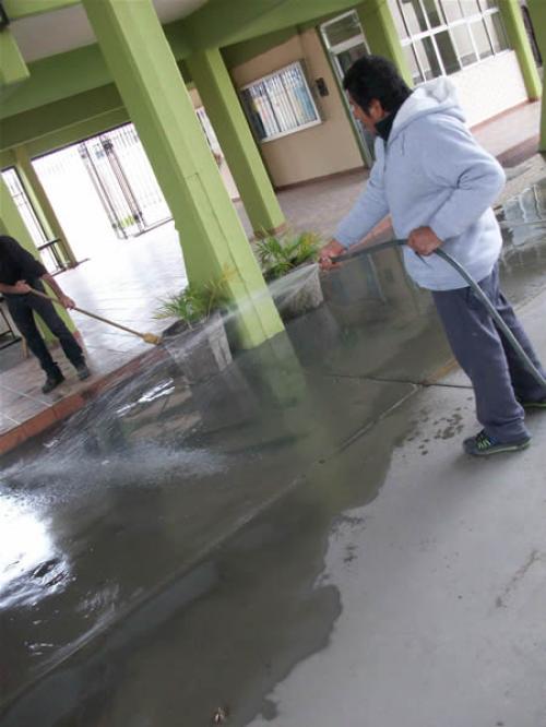 ¨Estuvo hasta mitad de cancha, patios, talleres se introdujo las aguas negras y ese es el motivo por el cual vamos a lavar y desinfectar¨.