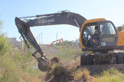 Sigue limpieza del dren Río Bravo para evitar inundaciones
