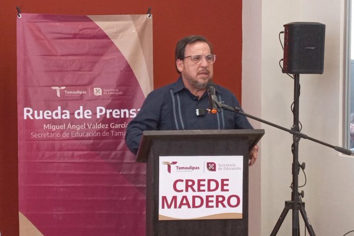 Madero, Tamaulipas.–Al realizar una visita al sur de Tamaulipas para sostener reuniones de trabajo con maestros, supervisores y coordinadores del sistema educativo de Ciudad Madero, el secretario de Educación en el estado, Miguel Ángel Valdez García, destacó las ventajas que traerá consigo la implementación de un programa unificado en el nivel medio superior, el cual busca resolver problemáticas históricas en la evaluación y movilidad de los estudiantes.
